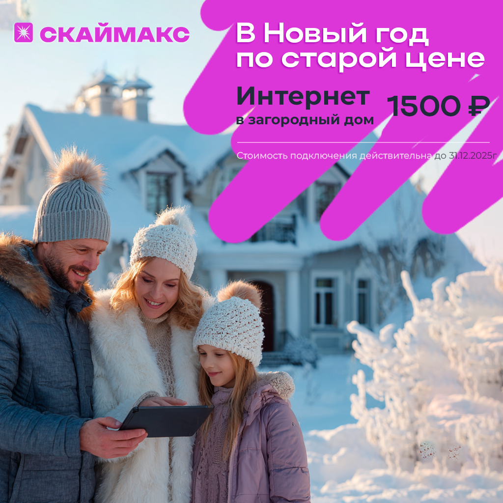 Сделайте новогодние каникулы в загородном доме по-настоящему волшебными: подключайте стабильный интернет СКАЙМАКС в свой дом до 31.12.2025г за 1500 рублей. И мы спешим Вам напомнить график работы в предпраздничные и праздничные дни: